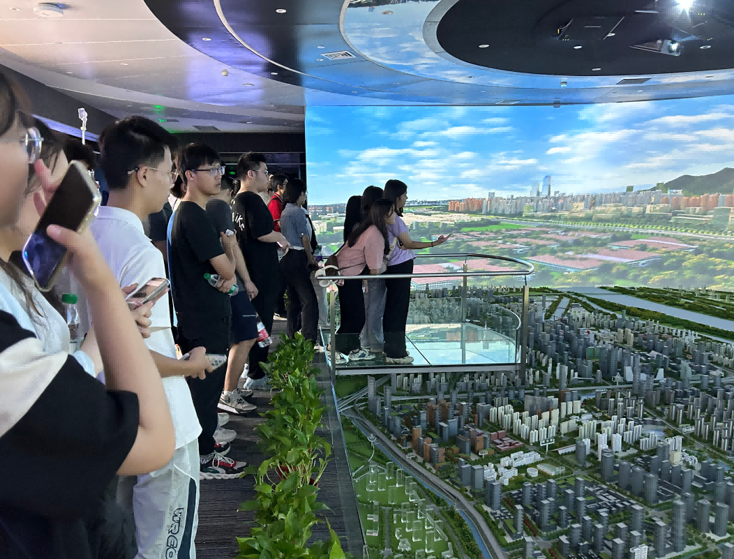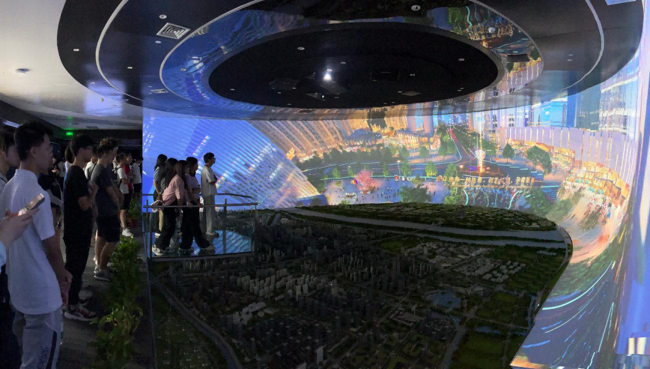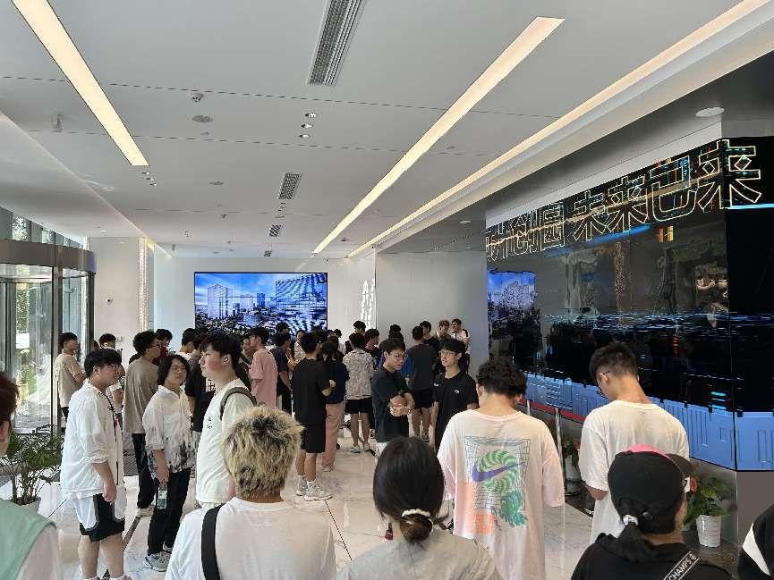 园区内现代建筑群错落有致,每一砖一瓦都蕴含着创新和科技的基因。云闪付科技IT菁英暑期实训营的学员们怀揣着对科技的无限憧憬步入研创园展厅。展厅内部设计充满科技感,一块块巨大的模型和显示屏映入眼帘,生动展现了研创园的科技规划,以及从梦想走向现实的开展历程。