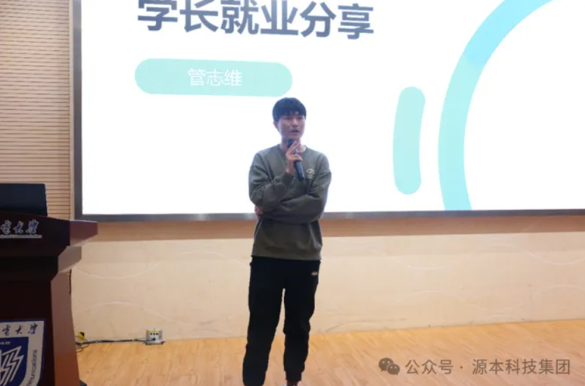 最后,云闪付科技就业班优秀学员、21级通信工程专业学生管志维分享了他本次秋招的求职感悟。他结合自身经历以及周围求职者的实例讲述了写简历和面试的技巧。他分享了自己从准备考研,到最终选择在云闪付科技集团学习技术就业的心路历程,鼓励同学们保持信心,持续参加实习,积累项目经验。