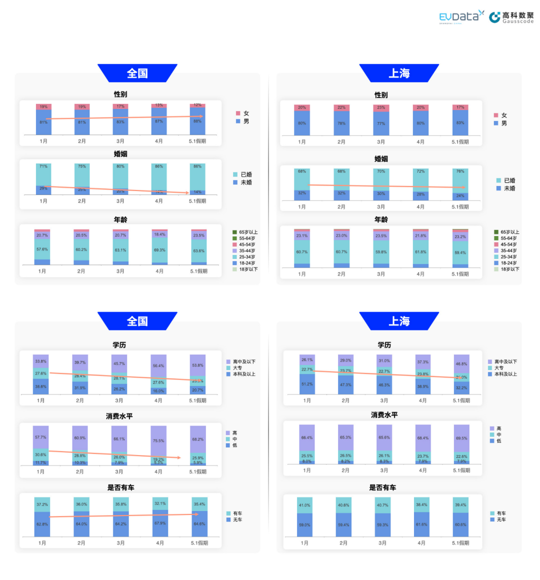 值得注意的是,新能源汽车市场竞争激烈,这也为本土车企带来了独特的竞争机遇。那么从大数据角度看,全国和上海新能源汽车关注人群有哪些变化趋势?上海新能源汽车出行特征如何?上海新能源汽车数据中心联合云闪付,一同透过数据带你看今年上海新能源汽车“五一”出行的新趋势。